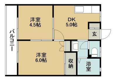 | 間取り | 2DK(DK5洋室4.5洋室6) | 主要採光面 | 南 |