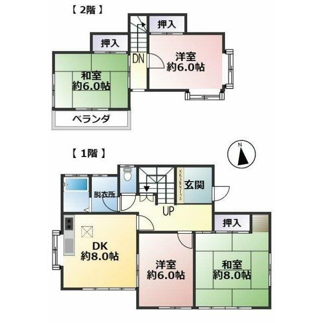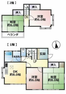 | 間取り(内訳) | 4DK(DK8、洋6、6、和8、6) | 建物面積 | 82.21㎡ |